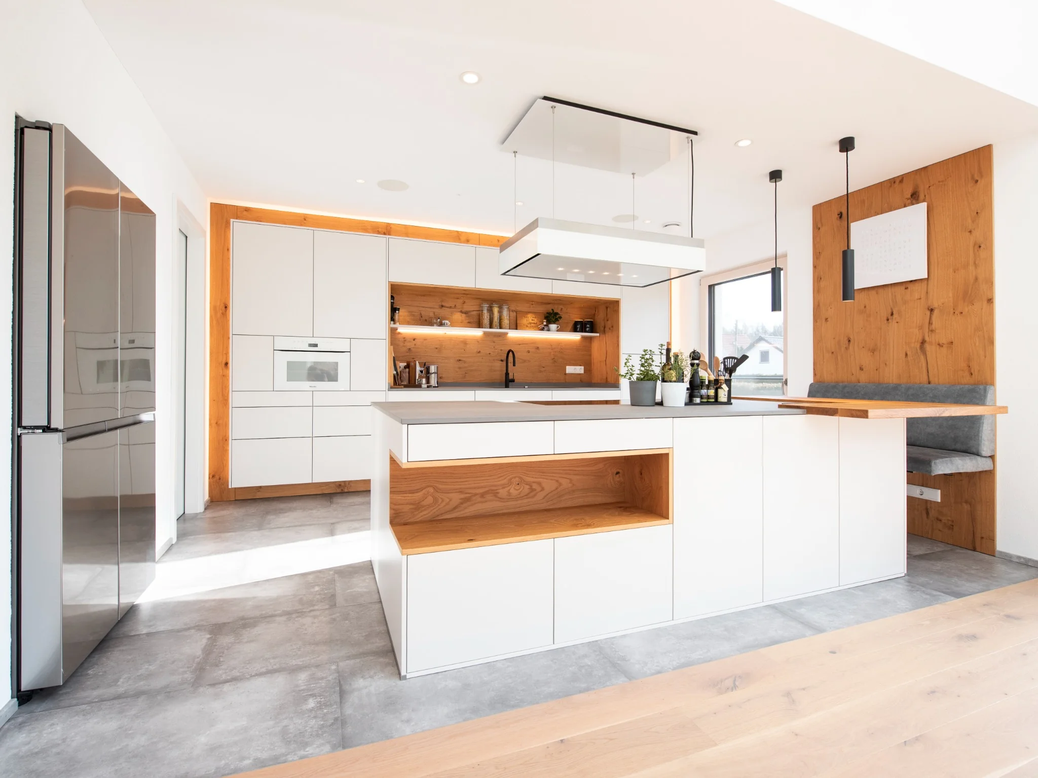 Eine perfekt abgestimmte Kombination aus Holz, Stein und modernen Geräten – stilvoll, ruhig, hochwertig.