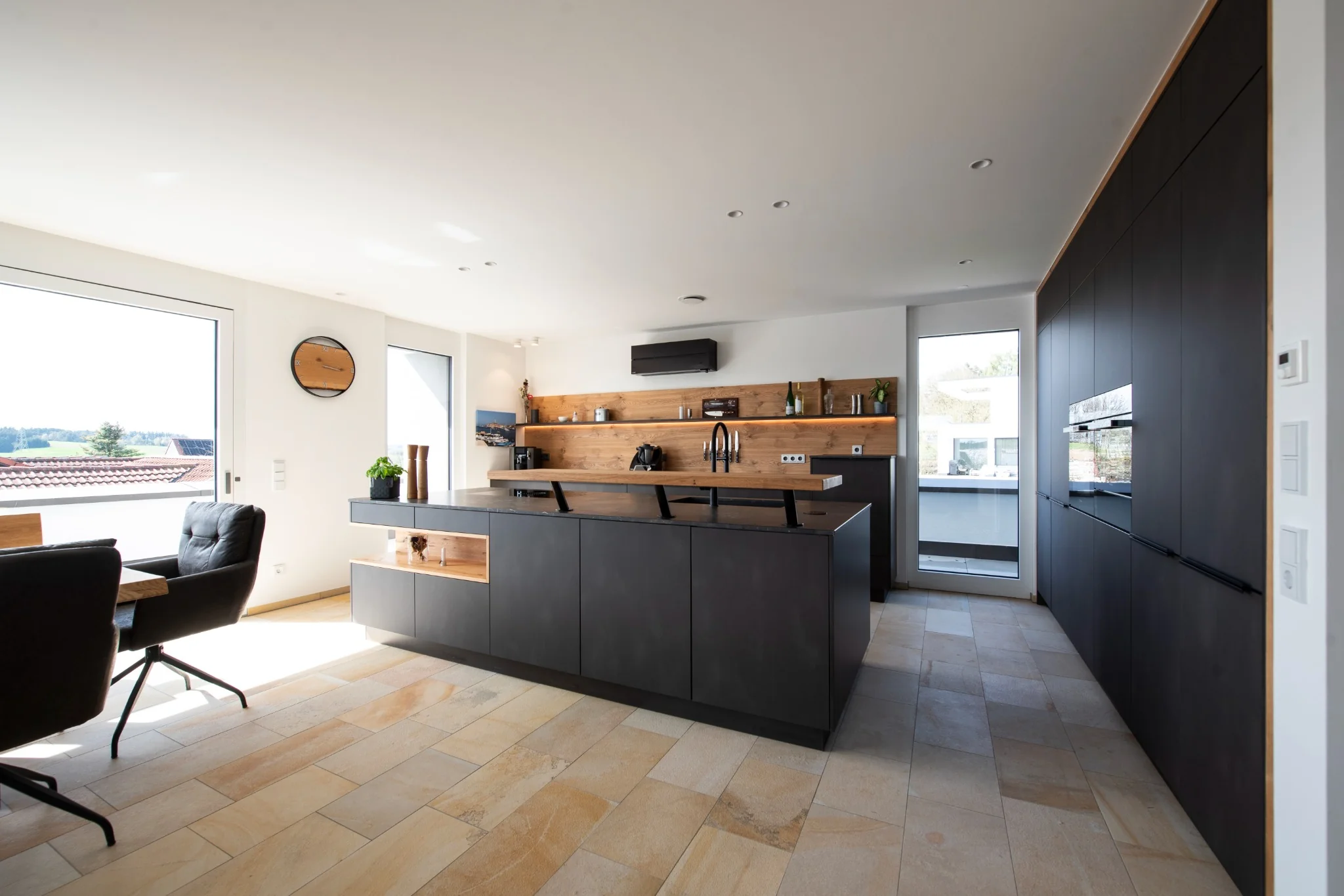 Eine perfekt abgestimmte Kombination aus Holz, Stein und modernen Geräten – stilvoll, ruhig, hochwertig.